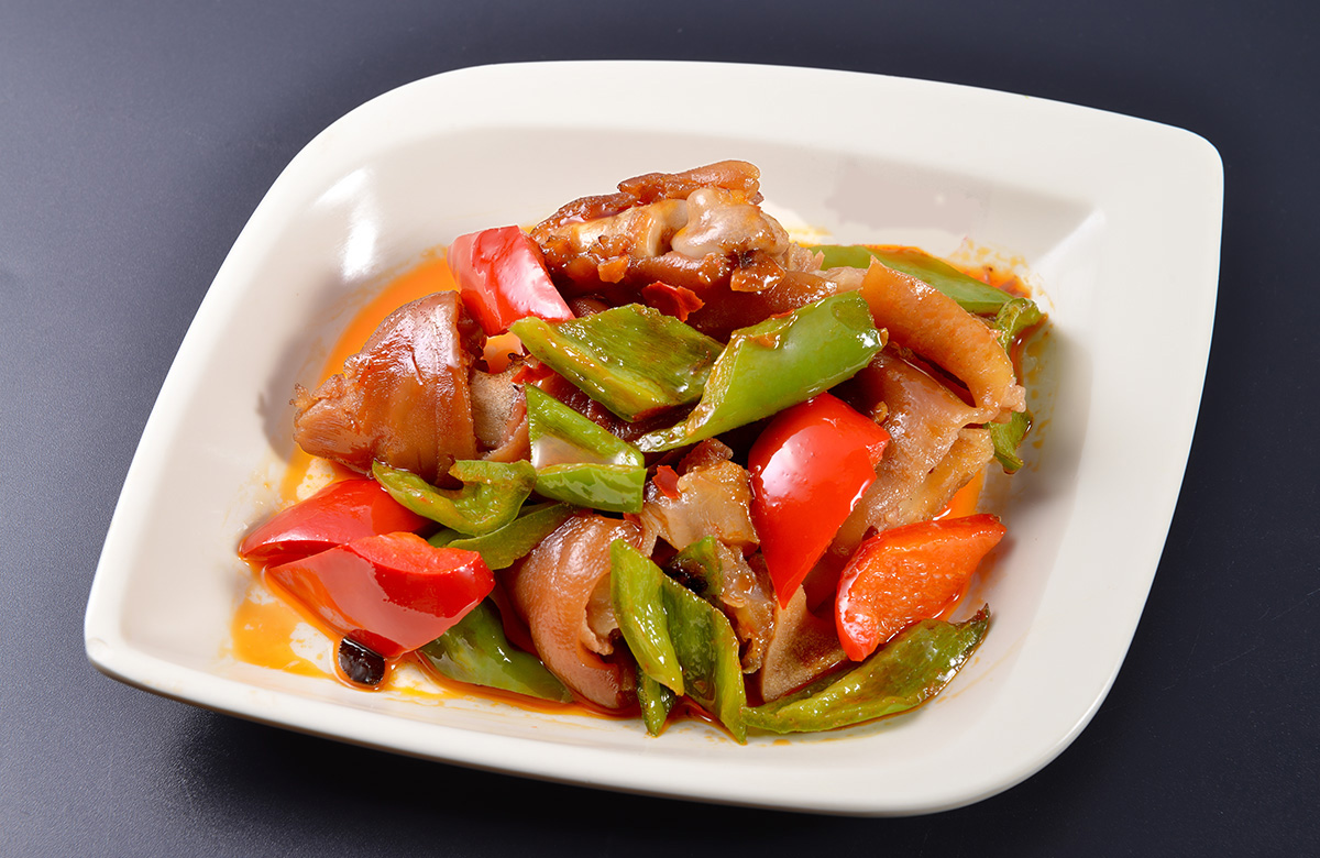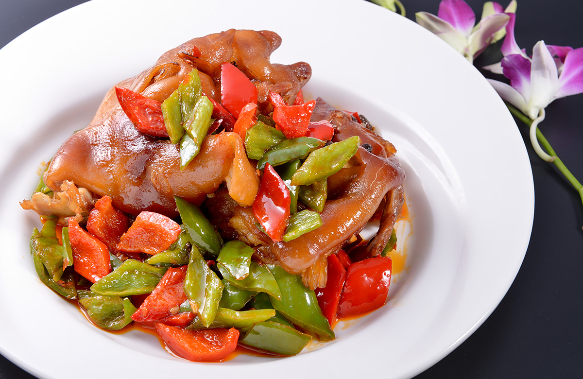 香辣豬蹄主要材料有豬蹄,配料有花椒、干紅辣椒、蔥、姜、蒜等。其味道香辣可口,肥而不膩。香辣豬蹄是一道家常菜。該菜適宜于經常四肢乏力、兩腿抽筋、麻木、消化道出血、失血休克及缺血性腦病患者食之。
